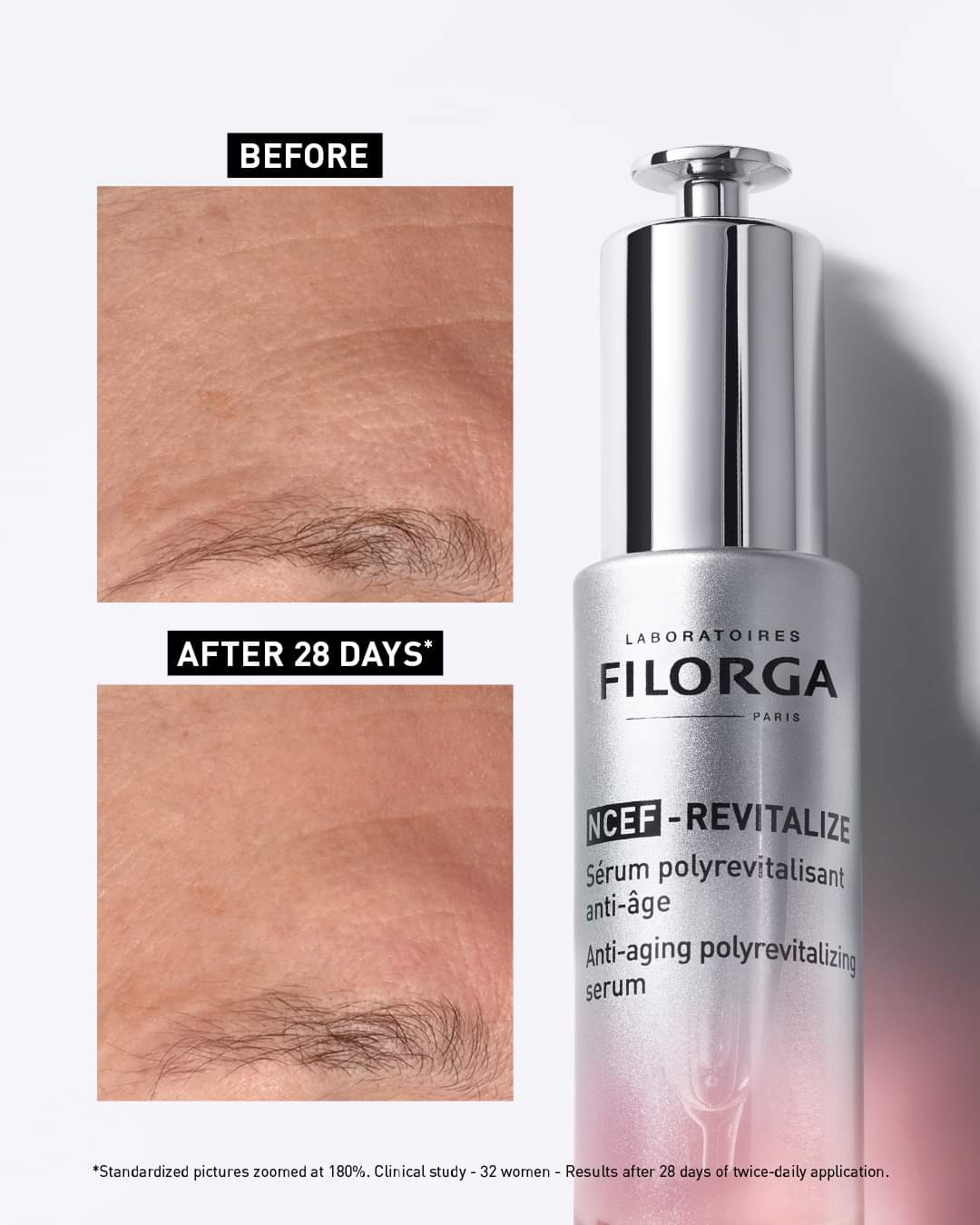 The Filorga NCEF Revitalize Serum works on multiple levels: it revitalizes tired, dull skin, combats early signs of aging, and reinforces the skin barrier for a smoother, firmer, and more luminous complexion. With daily use, skin looks refreshed, re-energized, and youthful.