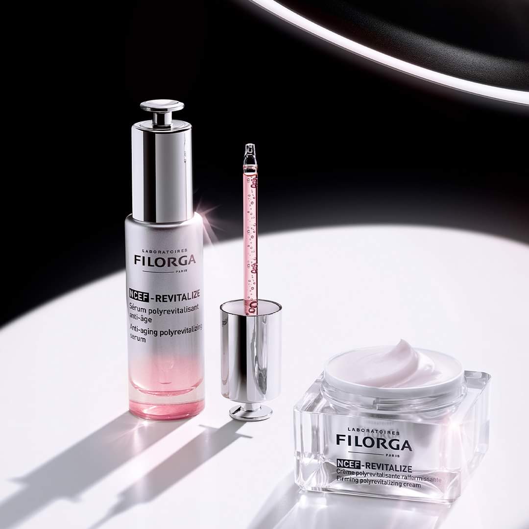Filorga NCEF Revitalize Serum is an intensive anti-aging concentrate designed to boost skin radiance, smooth wrinkles, and restore vitality. Formulated with Filorga’s exclusive NCEF complex — a unique blend of more than 50 revitalizing ingredients — this serum deeply rejuvenates and strengthens the skin from within.