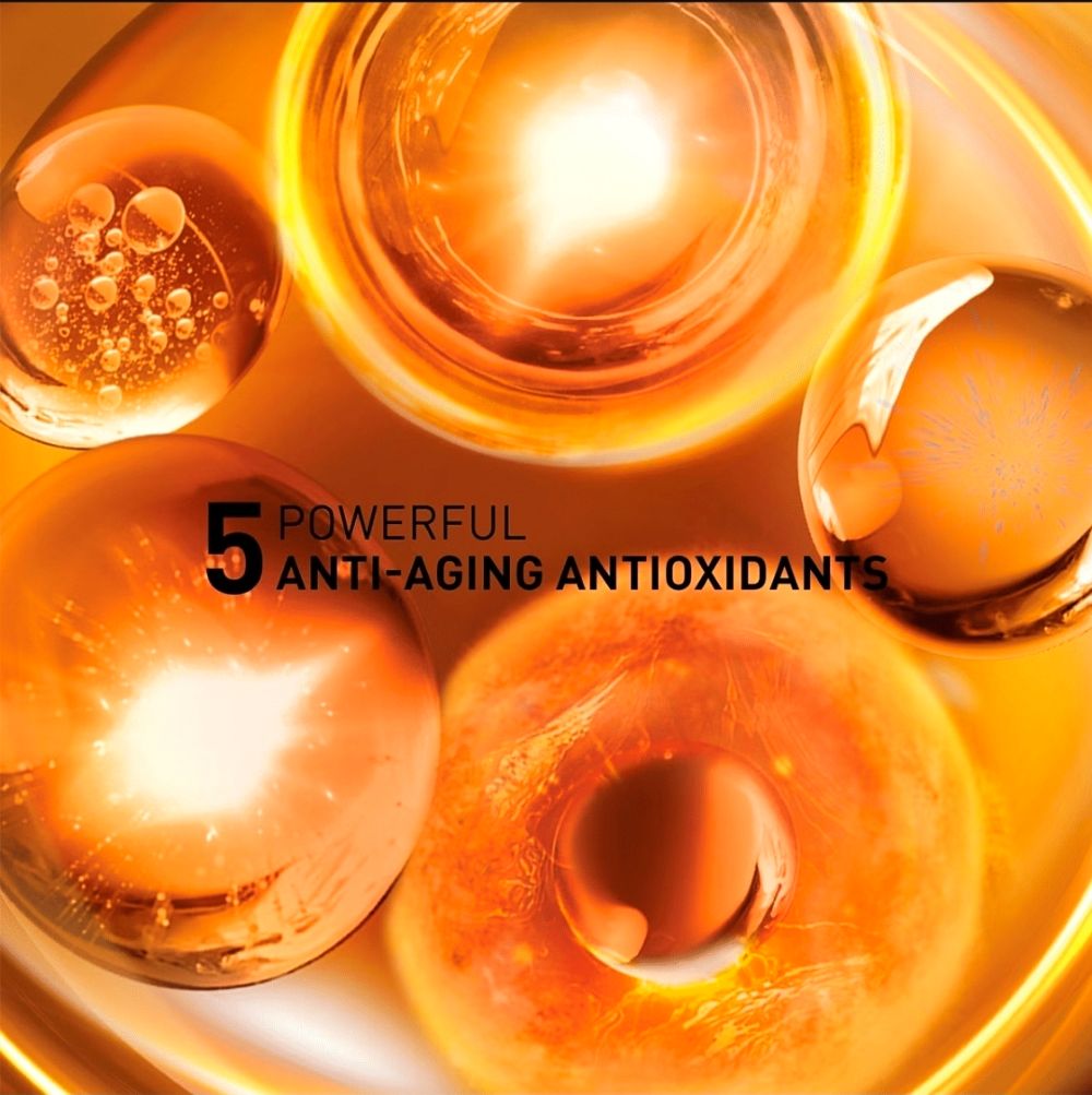 The formula is powered by five key antioxidants, including vitamin C, vitamin E and powerful polyphenols. Together, they neutralise free radicals, brighten dull skin and strengthen the skin’s natural defence system. At the same time, hyaluronic acid delivers long-lasting hydration to plump the skin and improve overall texture.
