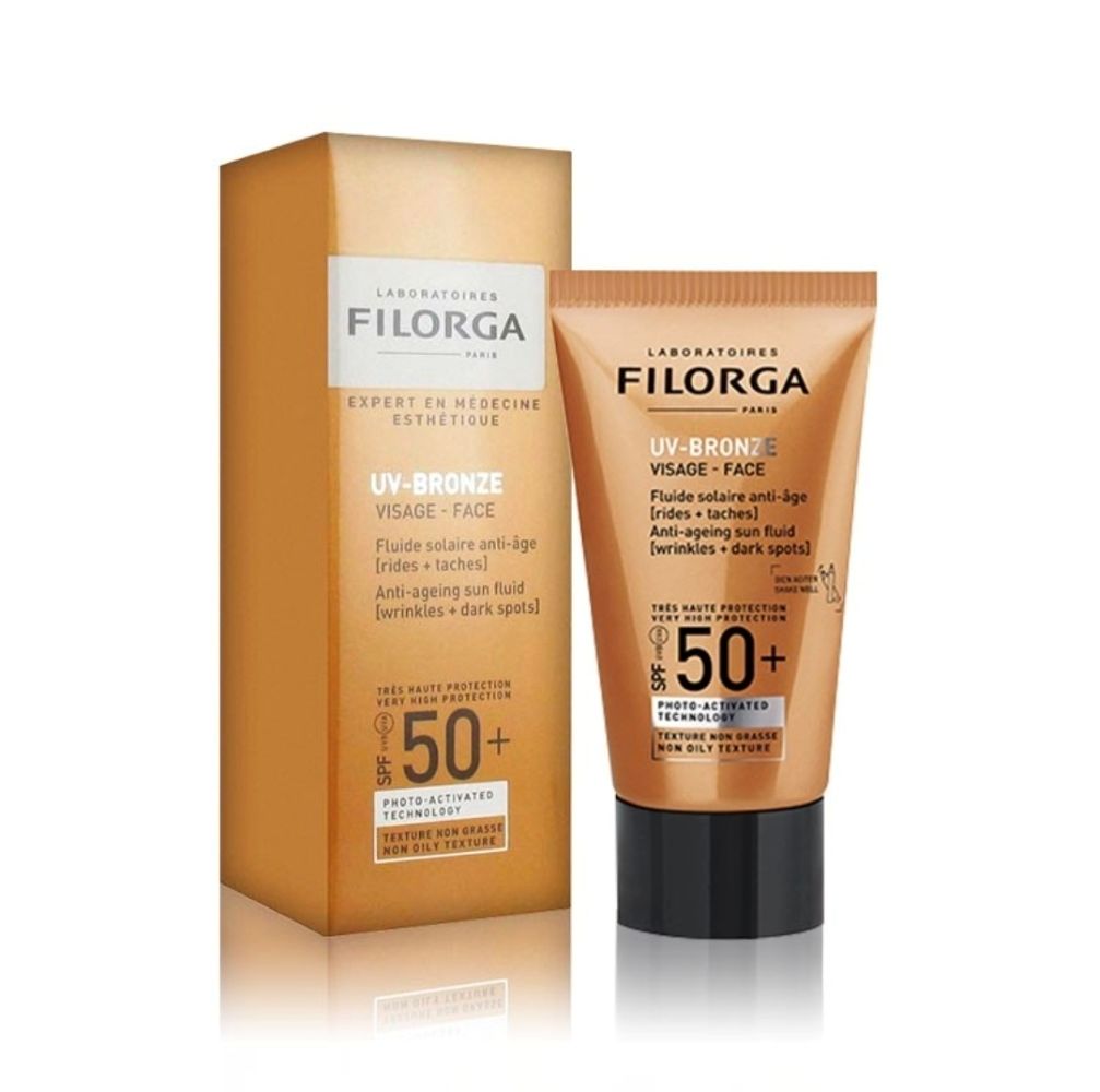 Filorga UV Bronze Face SPF 50+ is a high-performance anti-ageing sun fluid that delivers broad-spectrum protection while enhancing skin quality. Lightweight and comfortable, the filorga uv bronze formula shields the skin from UVA and UVB rays and helps prevent photo-ageing, dark spots and loss of firmness.