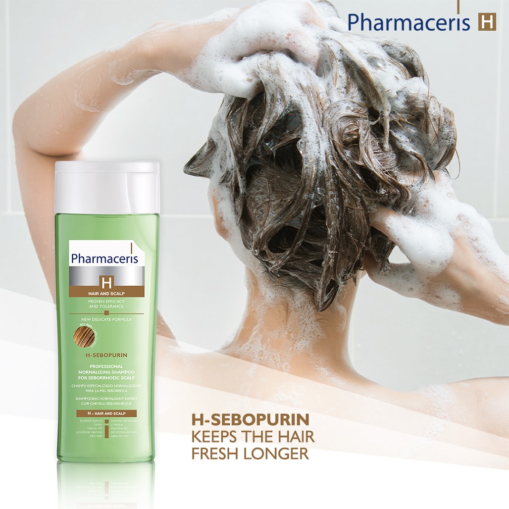 Pharmaceris H – Sebopurin Professional Seborrhoeic Scalp And Oily Hair Shampoo was developed by Dr Irena Eris Centre for Science and Research, this concentrated formula enriched with burdock extract effectively cleanses the hair and normalizes excessive scalp oiliness, reducing it by 35% on average.