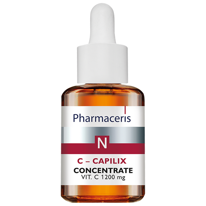 Pharmaceris N – Capilix Vitamin C 1200 mg Ampoule is recommended for dilated capillaries and skin under oxidative stress, free radicals, prone to micro-irritations and accelerated ageing, with deepening wrinkles, losing radiance and elasticity.