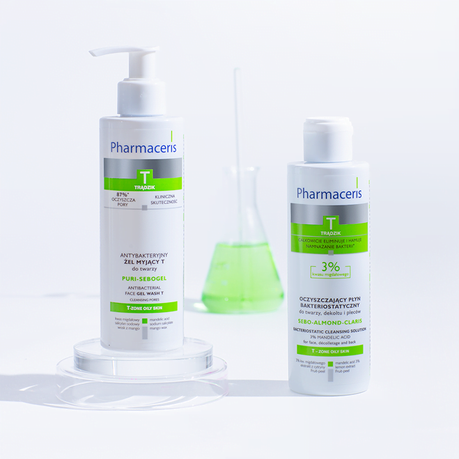This product inhibits bacterial growth, prevents breakouts, deeply cleanses, and regulates sebum production. Mandelic acid exfoliates and unblocks pores, smoothing and renewing the skin. Lemon extract and fruit-peel help even skin tone without causing dryness. It also prepares the skin for further anti-acne treatments with Pharmaceris T products.